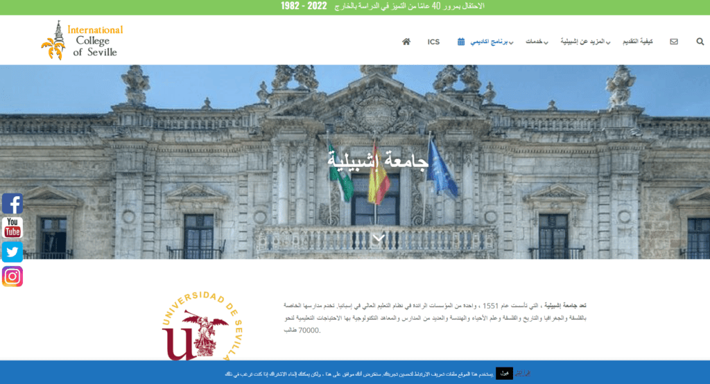 تعتبر جامعة اشبيلية من أقدم وأعرق الجمعات في إسبانيا وهي واحدة من المؤسسات الرائدة في نظام التعليم العالي في إسبانيا وتقدم العديد من البرامج الدراسية بالفلسفة والجغرافيا والتاريخ وعلم الأحياء والهندسة وتضم العديد من المدارس والمعاهد التكنولوجية بها الاحتياجات التعليمية كما تقدم الجامعة مجموعة من المنح الدراسية الممولة للطلاب المجليين والدوليين.