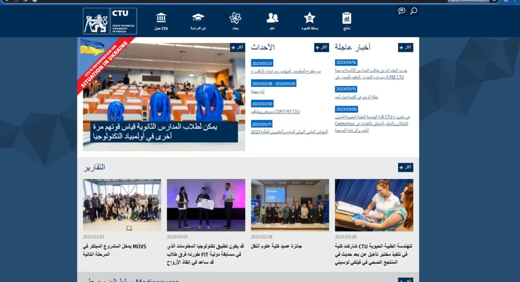 تعد الجامعة التشيكية التقنية في براغ (CTU) واحدة من أكبر وأقدم الجامعات التقنية في أوروبا وفي التشيك وتنقسم الجامعة إلى 8 كليات وتركز كل منها على جوانب مختلفة ويمكنك الاختيار من بين أكثر من 55 برنامج دراسي معترف به دولياً على مستوى البكالوريوس والماجستير والدكتوراه.