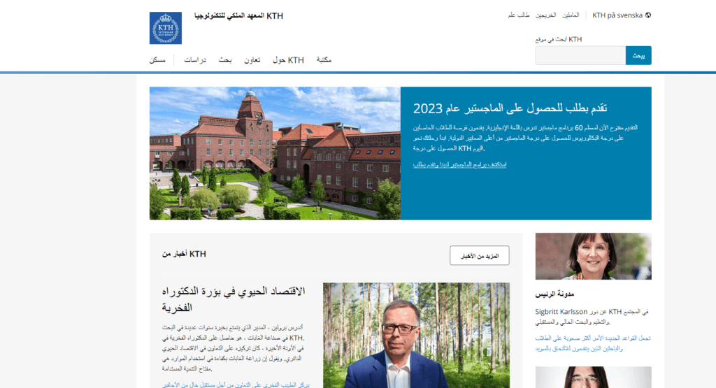 - منحة المعهد الملكي للتكنولوجيا KTH – منحة لدراسة الماجستيرفي السويد 2024