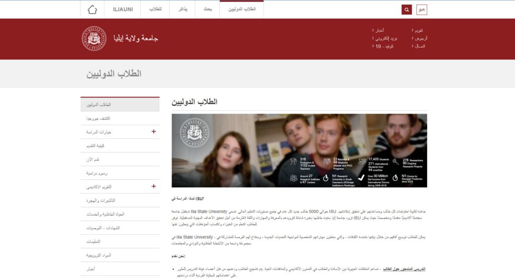 رابط موقع جامعة جورجيا في تبليسي الرسمي