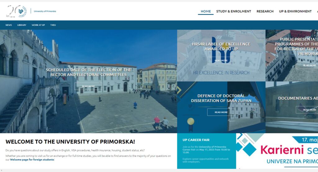 الموقع الرسمي لجامعة بريمورسكا (UP) السلوفينية