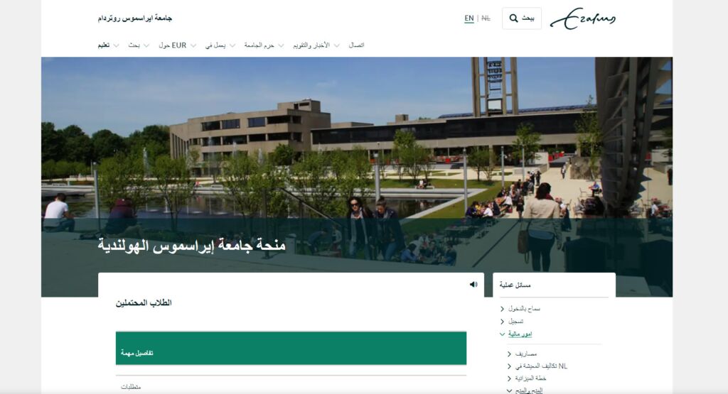 الموقع الرسمي لمنحة جامعة إيراسموس روتردام أفضل المنح الدراسية في هولندا