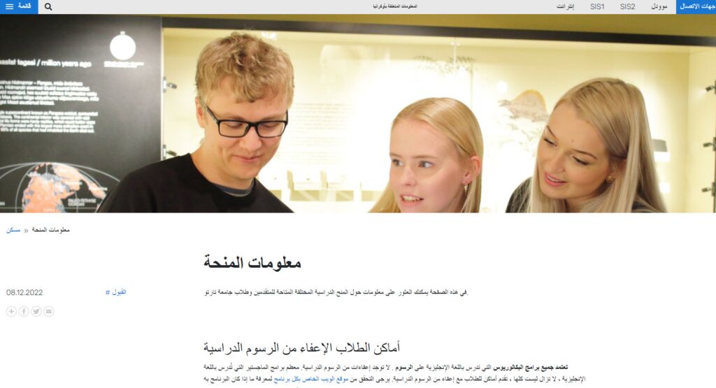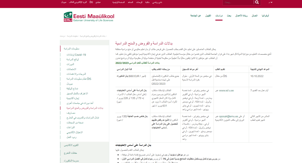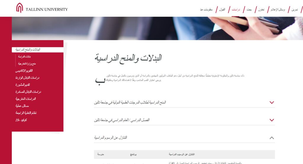 ولمزيد من التفاصيل عن منح جامعة تالين يرجى زيارة الموقع الرسمي:
