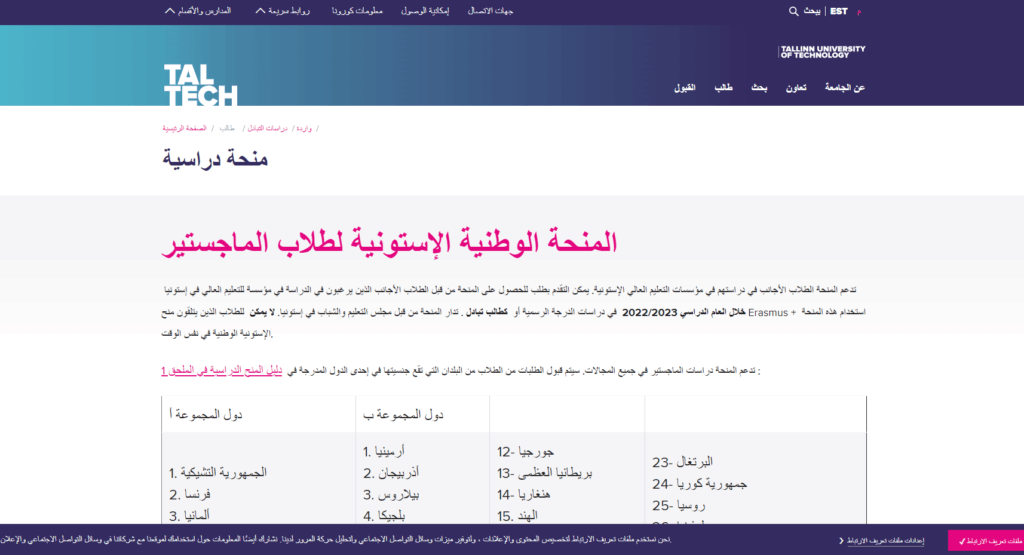 الموقع الرسمي للمنح الدراسية في جامعة تالين للتكنولوجيا في إستونيا