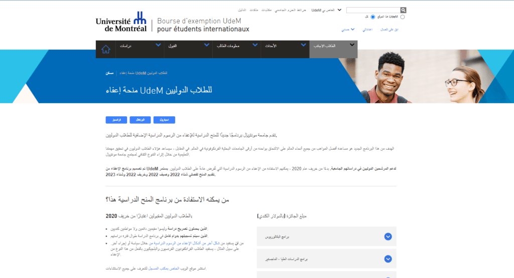 - منحة جامعة مونتريال في كندا لدراسة البكالوريوس والماجستير والدكتوراه