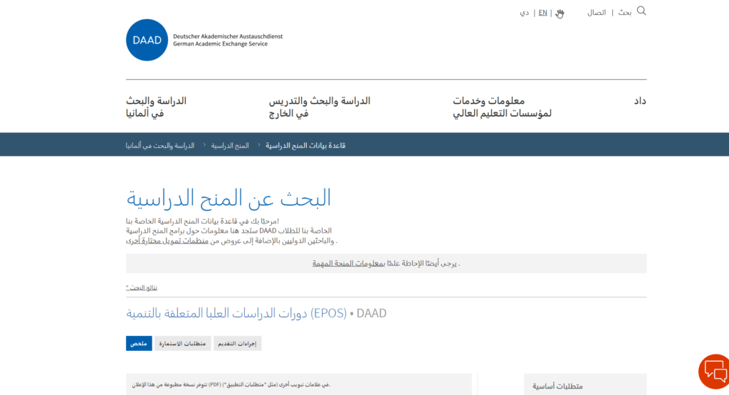 الموقع الرسمي للتقديم على منحة الحكومة الألمانية منحة DAAD