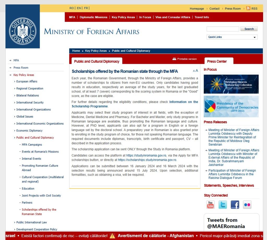 كيف احصل على منحة دراسية في رومانيا؟