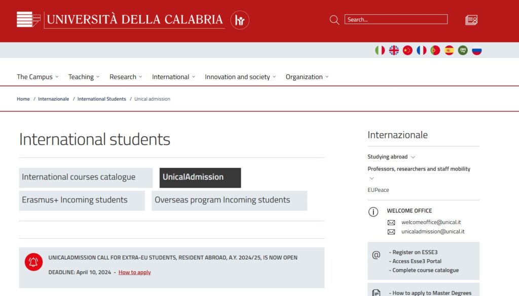للتقدم بطلب للحصول على منحة جامعة كالابريا للدراسة في إيطاليا، اتبع الخطوات التالية: