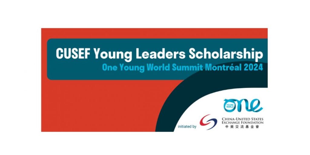 بالشراكة مع مؤسسة التبادل الصينية الأمريكية، تطلق One Young World منحة CUSEF للقادة الشباب في كندا 2024 لتحديد قادة شباب بارزين من جميع أنحاء العالم، ستتم عملية الاختيار بناءً على التأثير الاجتماعي الإيجابي المؤكد في مواجهة التحديات العالمية مثل تغير المناخ والفقر والمساواة بين الجنسين والصحة العامة.