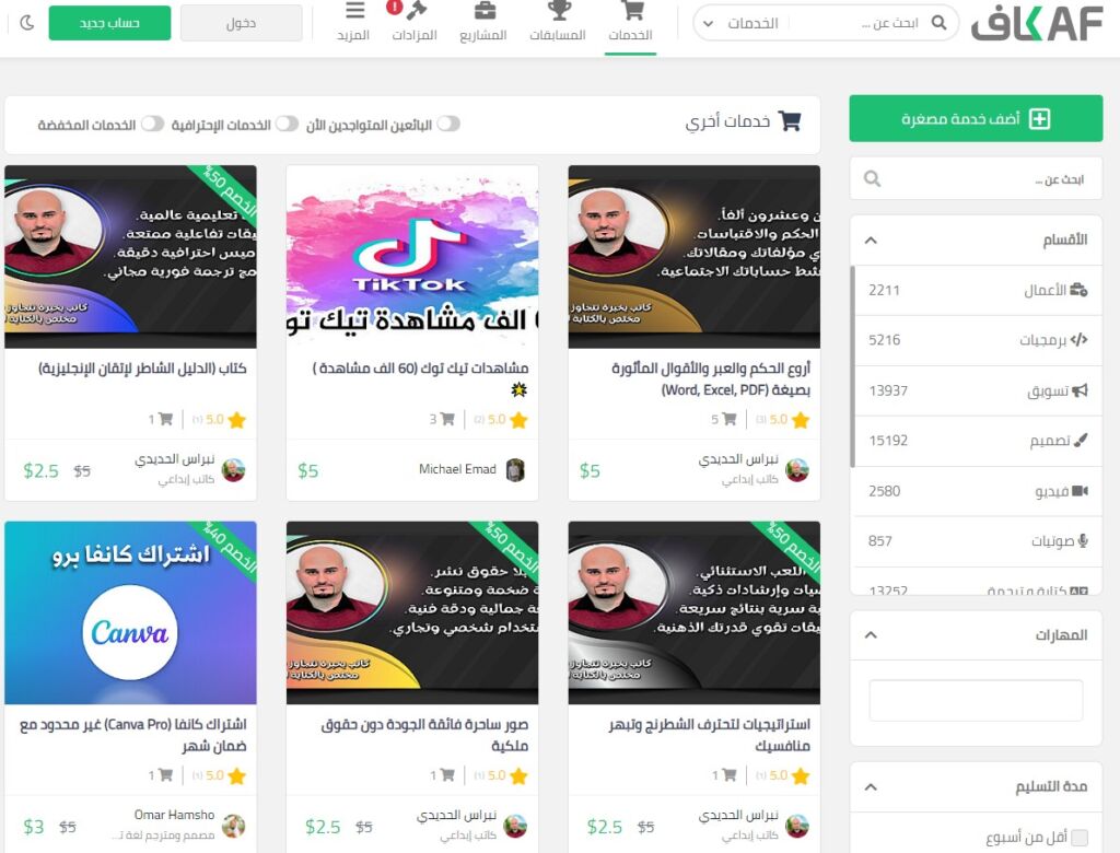 - التنوع في الخدمات: توفر كفيل خدمات متنوعة في مختلف المجالات، بدءًا من البرمجة والتصميم وكتابة المحتوى ووصولًا إلى الترجمة والتسويق الإلكتروني وغيرها.