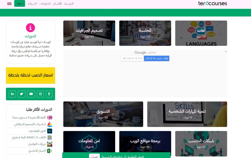 زيارة منصة tera courses تيرا كورسيز أفضل منصة تعليمية مجانية أون لاين بشهادات معتمدة