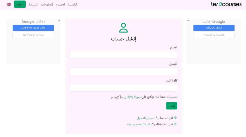 للتسجيل في منصة تيرا كورسيز أفضل منصة تعليمية مجانية أون لاين بشهادات معتمدة، اتبع الخطوات التالية: