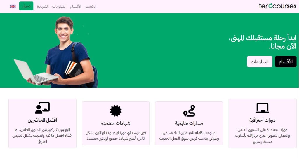 منصة tera courses تيرا كورسيز هي منصة تعليمية رائدة في الشرق الوسط تساعدك على بناء مسماك الوظيفي وتطوير مهاراتك مجاناً أون لاين بشهادة معتمدة.