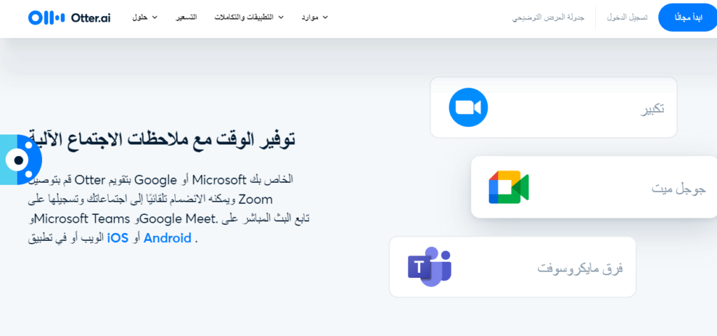 - Otter AI يمكنه الانضمام تلقائيًا إلى اجتماعاتك على Zoom أو Microsoft Teams أو Google Meet ويكتب ويشارك الملاحظات.