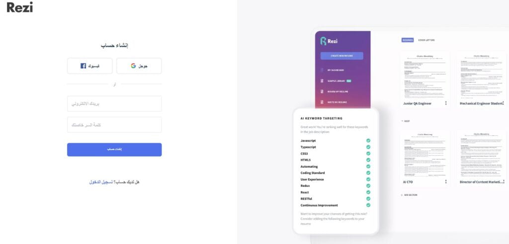 Rezi أفضل موقع لإنشاء سيرة ذاتية بالذكاء الاصطناعي