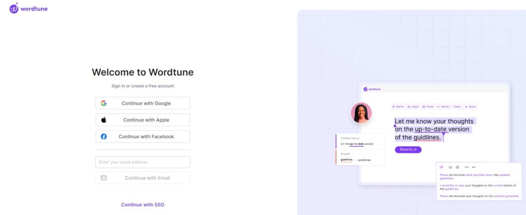 - ابدأ باستخدام Wordtune مجانًا لتجربة الميزات المختلفة.