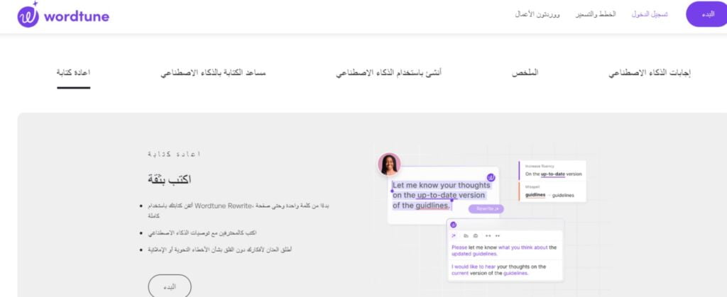 - انتقل إلى موقع Wordtune على الويب من هنا.